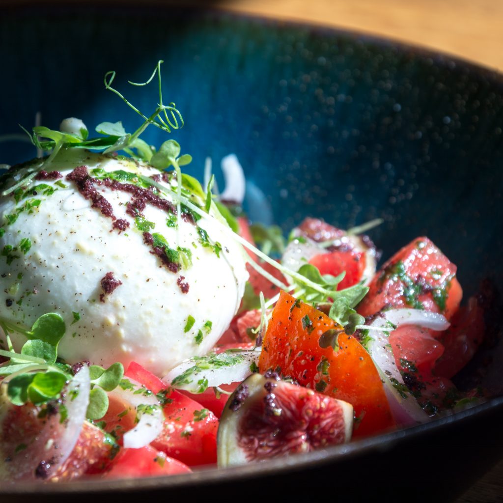 Burrata con tomate y higos (ensalada)