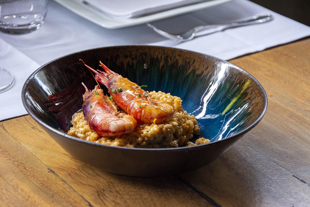 Gambas salteadas con paella marinera
